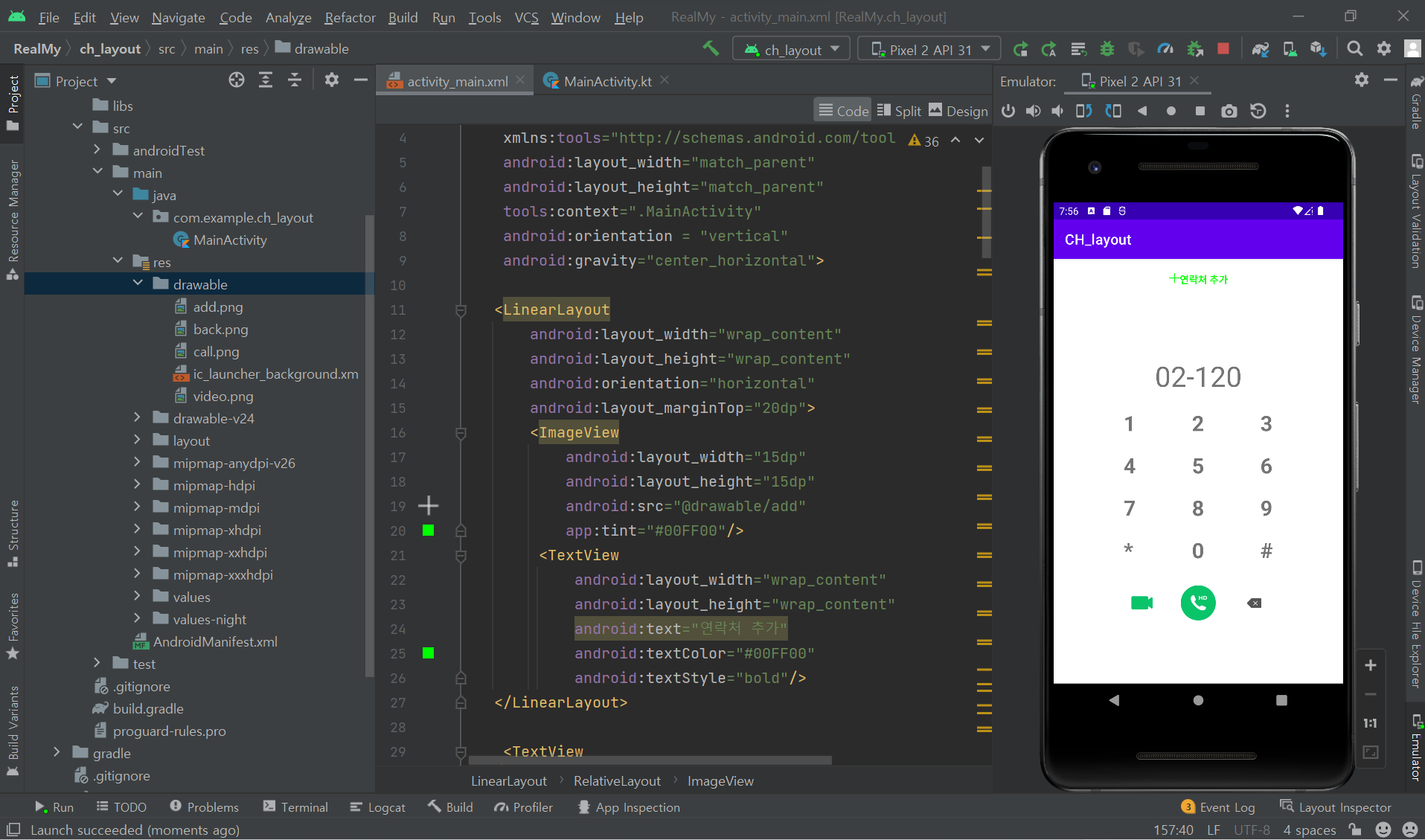 -LinearLayout으로 배치한 화면을 RelativeLayout으로 구현 O