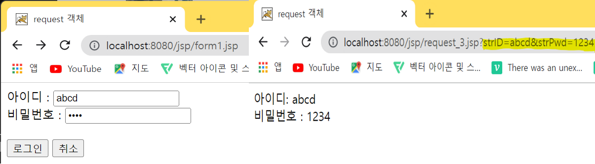(2) GET 방식 - URL 주소값에 사용자 입력값이 함께 나타남