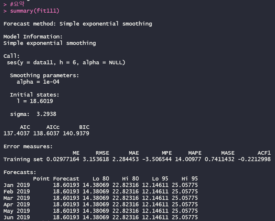 fit111 <- ses(data11, alpha = NULL, h=6)