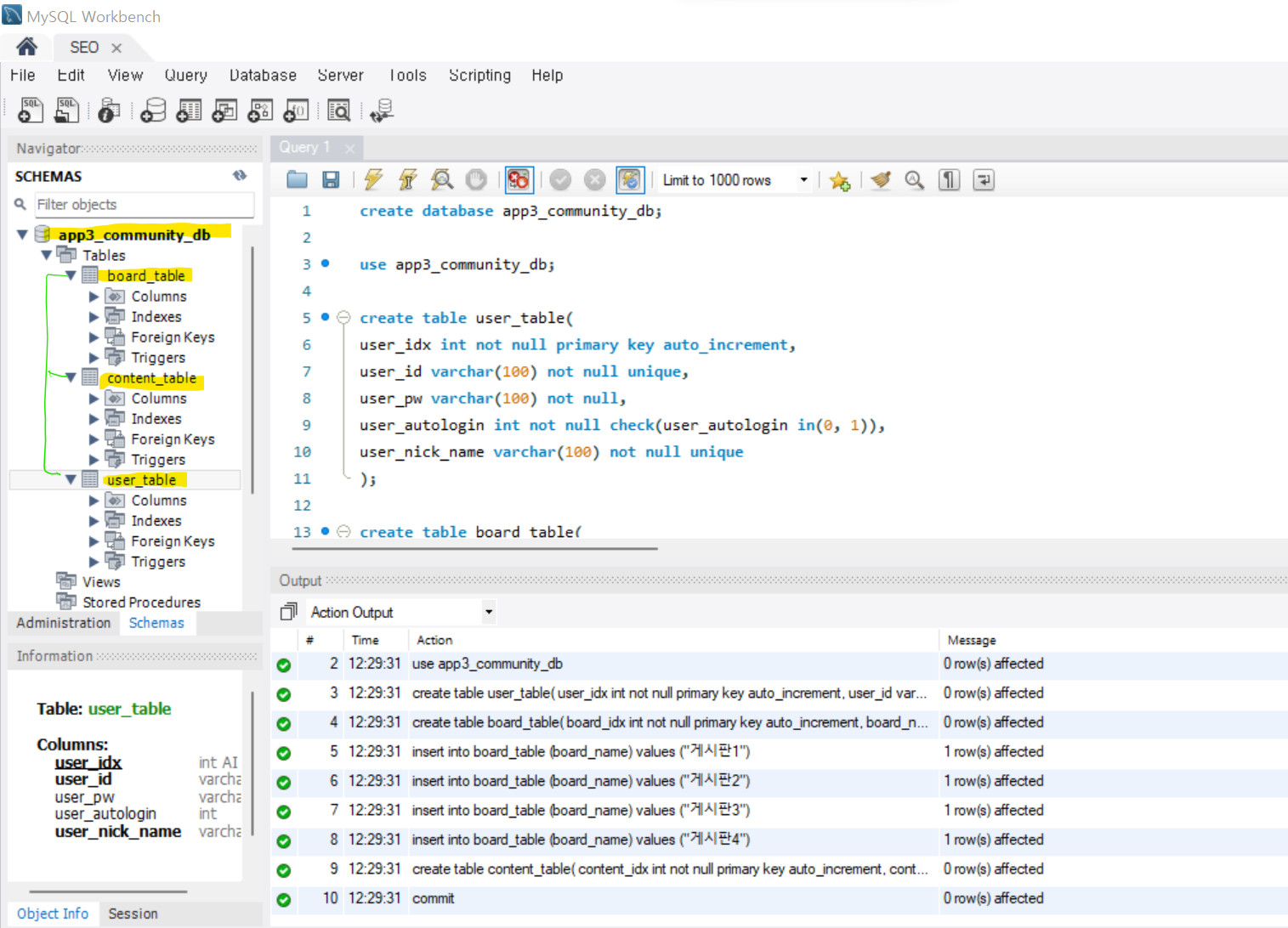 🟩MySQL 로 앱에 필요한 DB 테이블 구조 생성시킴