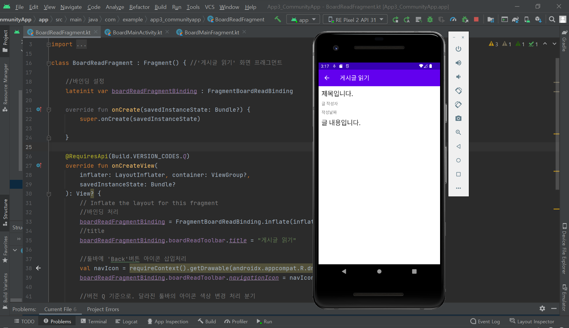 - 이 액티비티에서 게시판 관련 프래그먼트들을 관리함