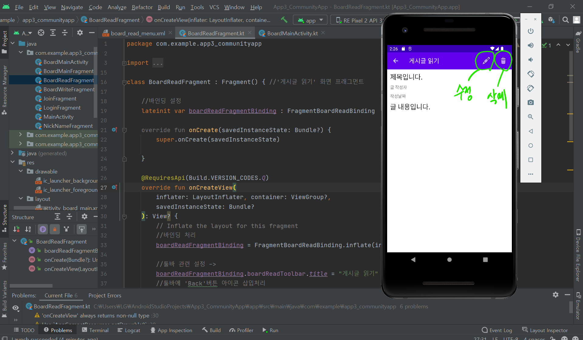 | # PRJ_3. 커뮤니티 게시판 앱_(9) 게시글 수정 화면 구성 (0) | 2022.08.02 |