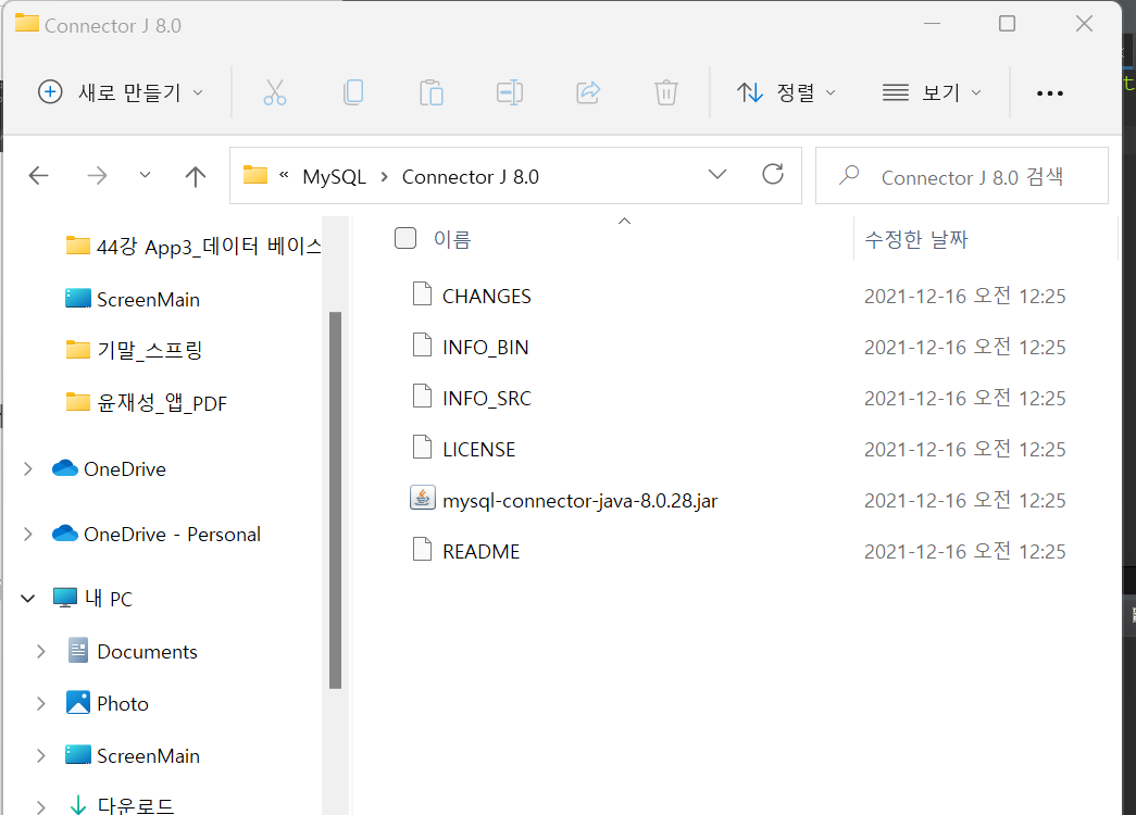 ◾ C드라이브 - Program Files(x86) - MySQL -Connector J 8.0 → mysql-connector-java…jar 파일