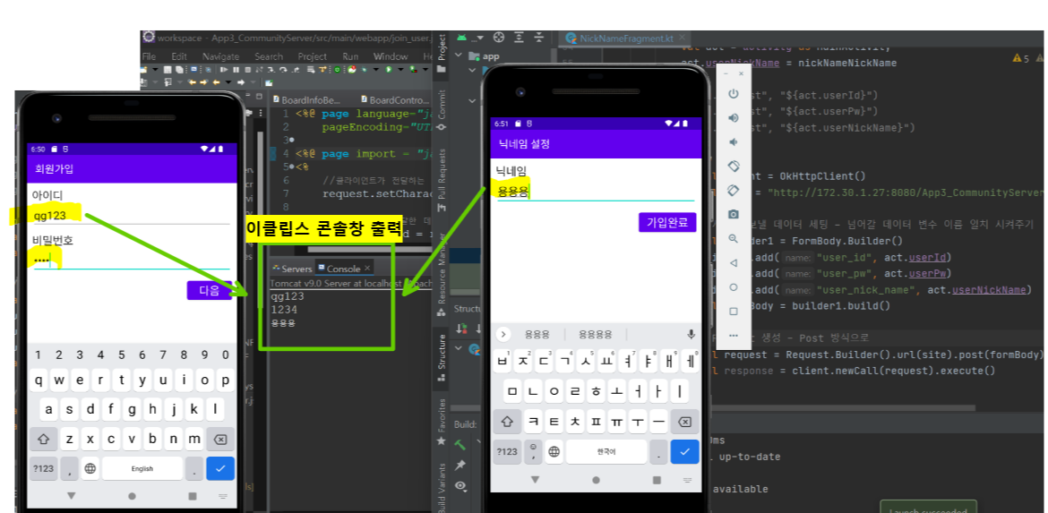 - 애플리케이션에서 입력한 회원 정보를 서버로 전달하여 서버/DB에 저장하는 작업을 처리한다.