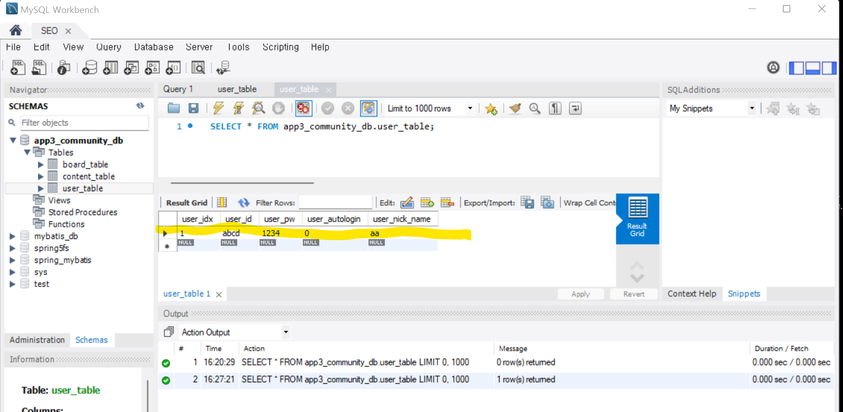 ◾MySql 데이터베이스에도 가입 정보가 저장된 것을 확인 가능