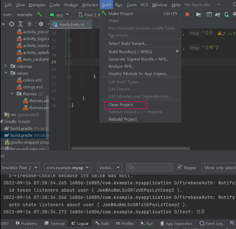 기존의 google-services.json 파일을 삭제하고 바꿔 주었지만, 파이어베이스 변경사항이 적용되지 않았던 것이었습니다. 컴파일러가 변경된 파일을 인식하고 새로 컴파일되어야 했던 것입니다. 그런데 안되었던 것입니다.