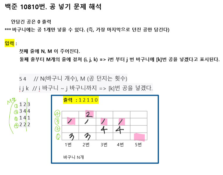 /* 백준.10810번. 공 넣기