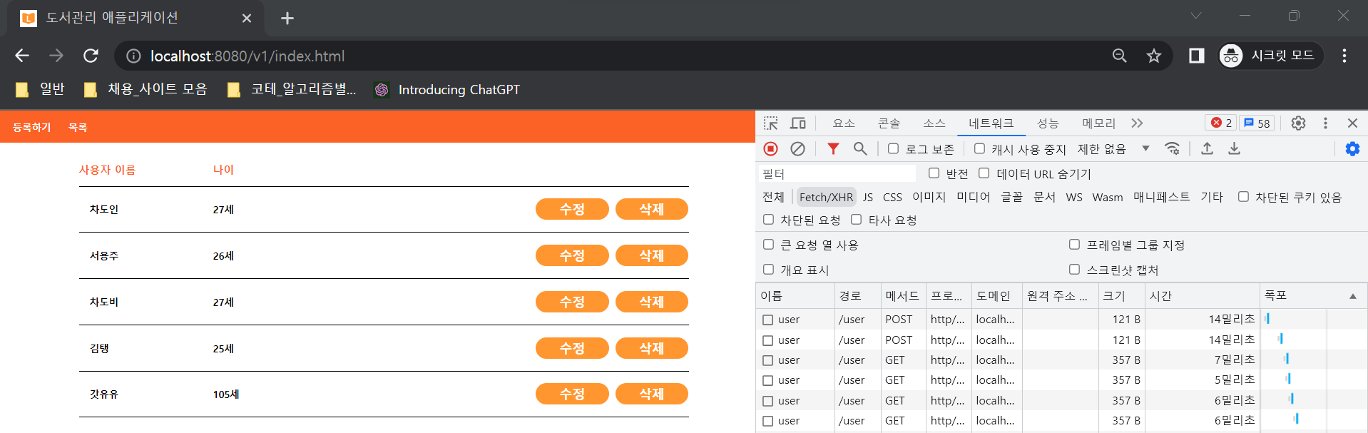 - 쿼리 사용 → 삭제할 이름name 값 기준으로 삭제