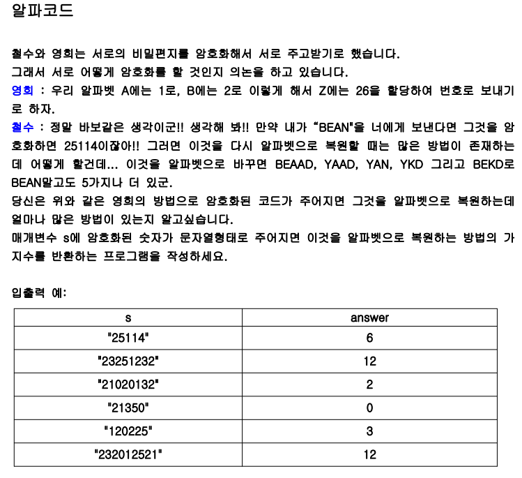 🟩 6번. 알파코드 | DFS