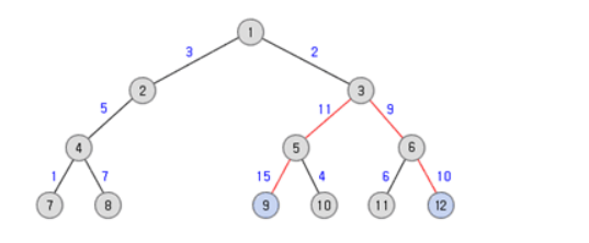 - 1번 루트 노드로 출발하여 DFS로 깊이 쭉 탐색했을 떄 단말노드에서의 총 가중치 합이 max를 갖는 곳을 찾아 그때의 노드 번호를 찾는다.