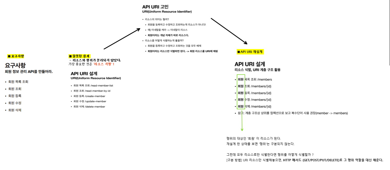 회원이라는 리소스만 식별해두고, 회원 리소스를 URI에 매핑하면 된다.