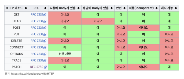 - PUT: 리소스가 있다면 대체, 해당 리소스가 없으면 생성
