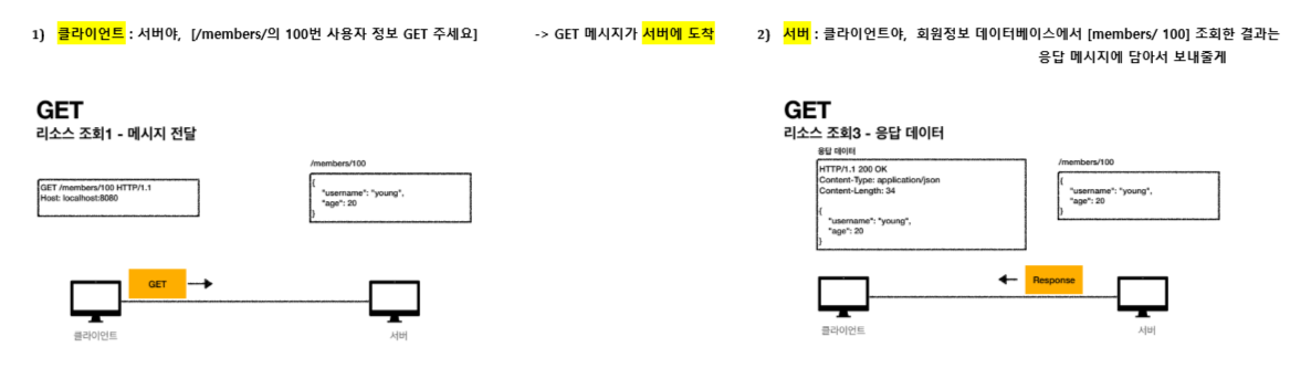 클라이언트가 /members/100 GET 메시지로 요청을 하면,