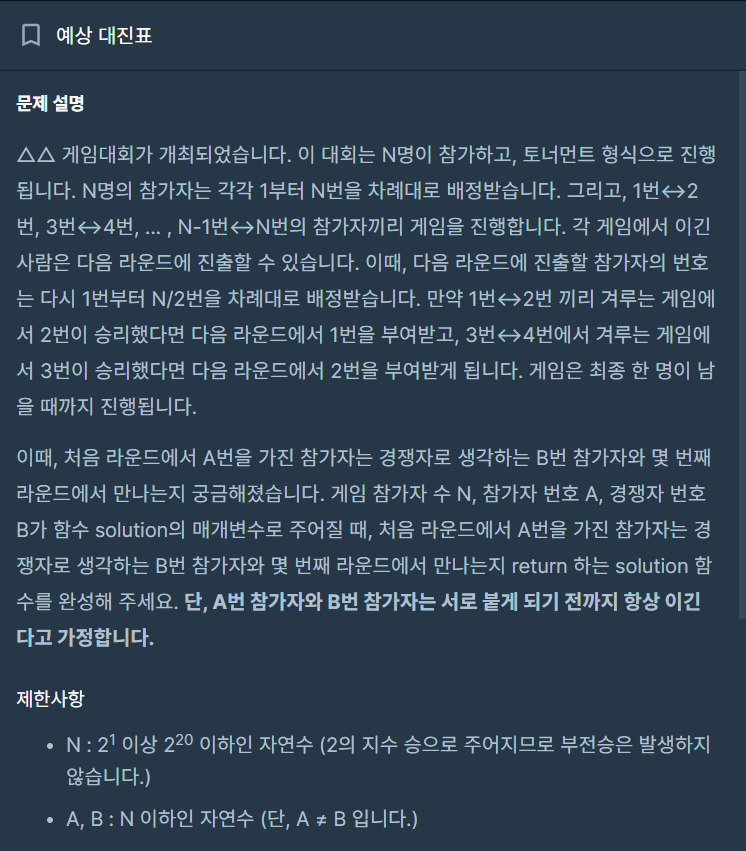 ⬛ 프로그래머스 | LV.2 예상 대진표 - 단순 구현 문풀
