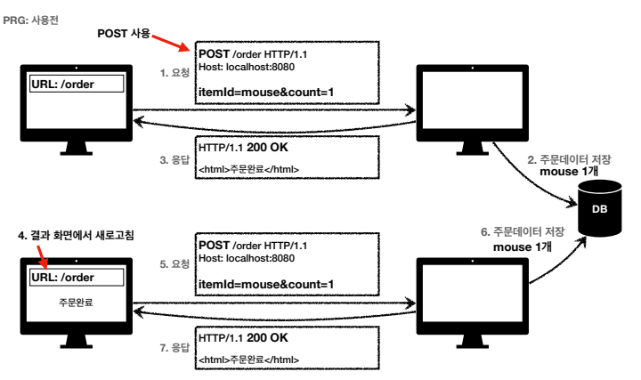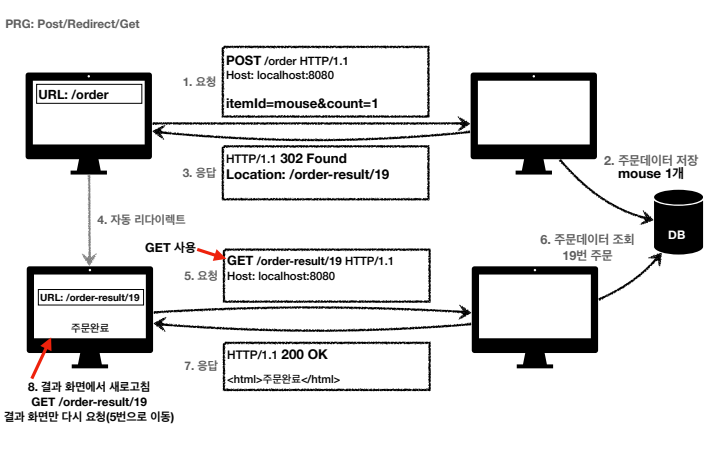 - 즉, 리다이렉트 후 재 요청 시, 중복 주문 대신 결과 화면만 GET으로 요청한다는 거다.