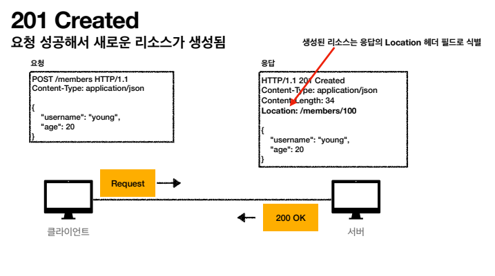 - HTTP 헤더 Location에 생성된 신규 리소스 URI를 넣어준다.
