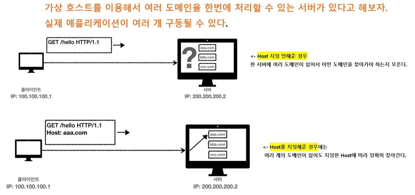 - 하나의 서버가 여러 도메인을 처리해야 할 때 or 하나의 IP 주소에 여러 도메인이 적용되어 있을 때 ‘구분해줘야 한다.’