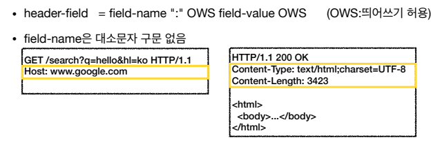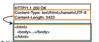 - Entity 헤더 : 엔티티 바디 정보 예) Content-Type: text/html, Content-Length:3423