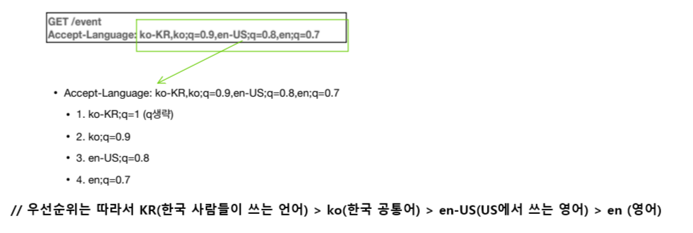 한국어 브라우저를 사용하고 다중 언어 지원하는 서버를 사용한다고 가정 하에 한국어 브라우저는 외국 사이트를 /event로 들어갔다고 치자. 이떄 서버는 내부적으로 우선순위가 기본 영어를 보내지만 한국어도 지원한다.