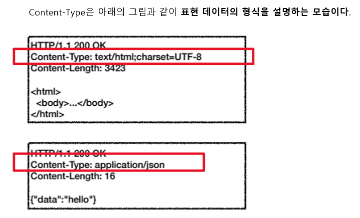 - 표현 헤더 = 표현 데이터를 해석할 수 있는 정보 제공