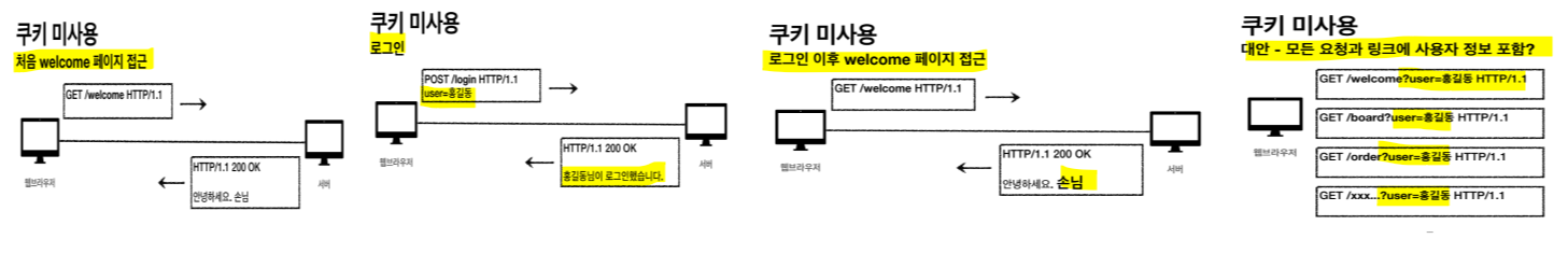 (4) 쿠키 미사용 시 대안 : 모든 요청에 사용자 정보를 포함