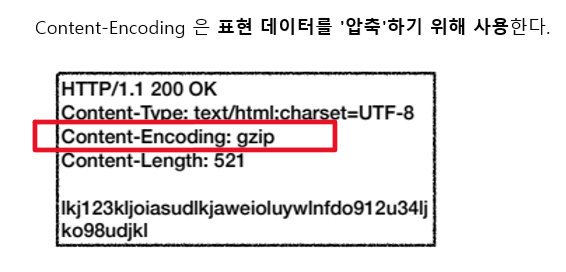 - Content-Encoding: 표현 데이터의 압축 방식