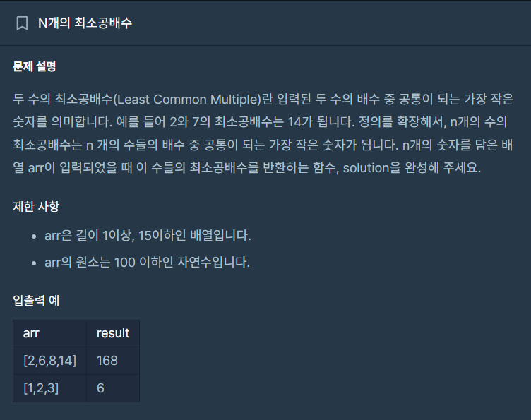 ⬛ 프로그래머스 | LV.2 N개의 최소 공배수 - 유클리드 호제법