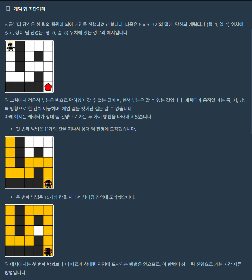 ⬛ 프로그래머스 | LV.2 게임 맵 최단거리 - BFS, 다익스트라 문풀