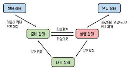 디스패치 (dispatch) : CPU 스케줄러에 의해 준비 상태의 프로세스가 실행 상태로 되는 것