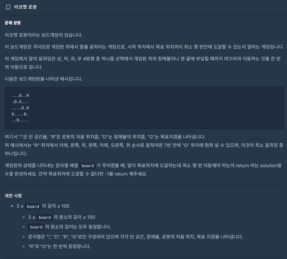 ⬛ 프로그래머스 | LV.2 리코쳇 로봇 - BFS 문풀