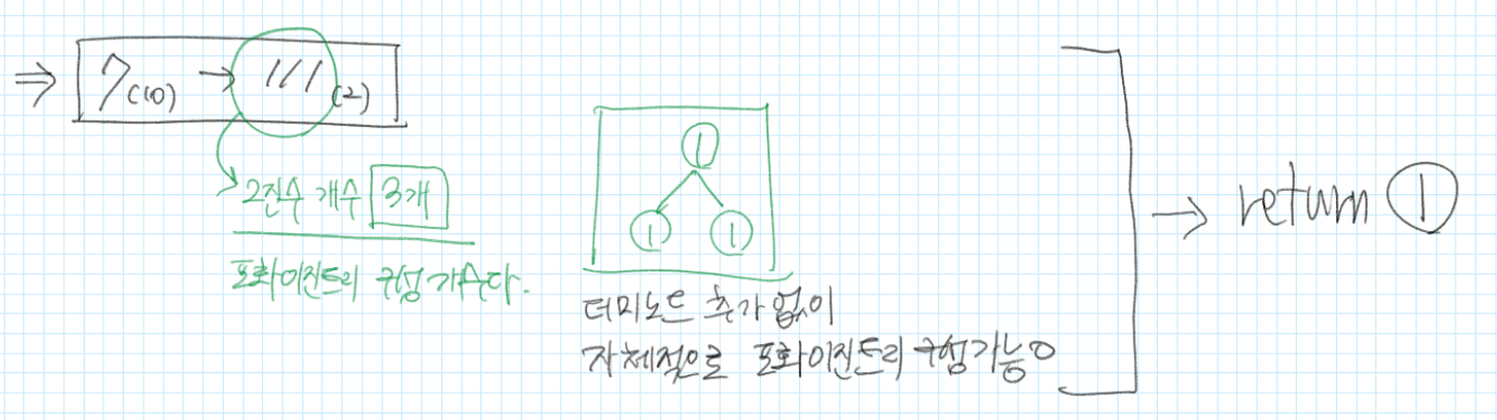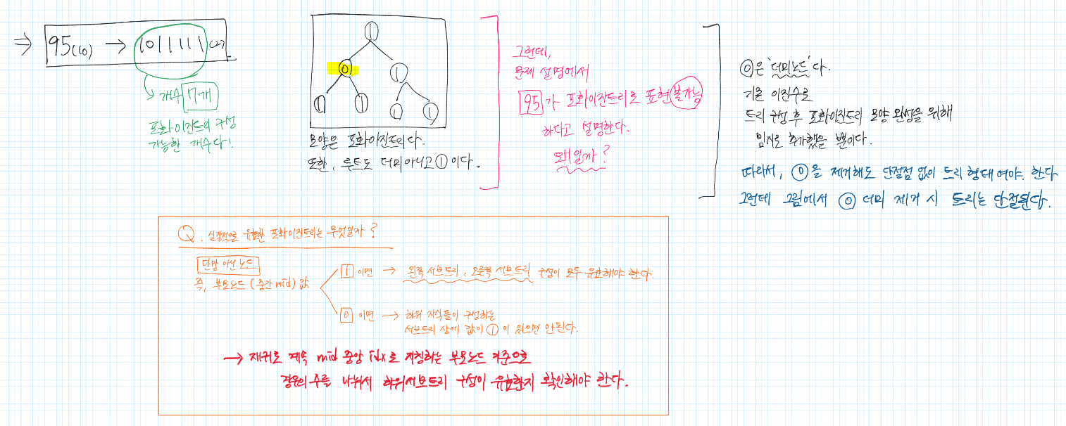 → mid중앙값이 1이 아닌 경우, 현재 노드의 왼쪽, 오른쪽 자식 부분의 구성에 1 포함 여부 확인