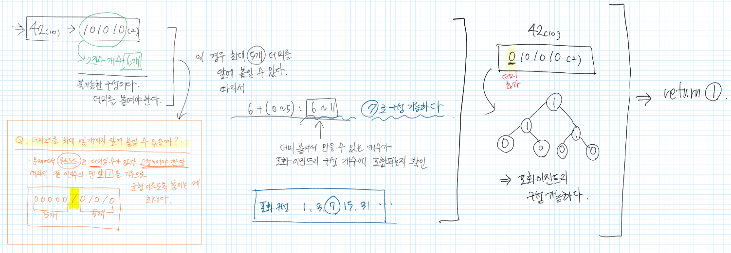 int canPlusDummy = binaryStr.length()-1;//루트 제외 개수만큼이 최대 추가 가능한 개수