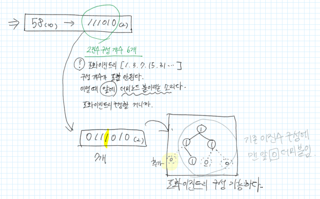 2) 더미노드를 현재 이진수 str 앞에 (0개~ 현재.lengt()-1 개수만큼)) 하나씩 추가해가면서