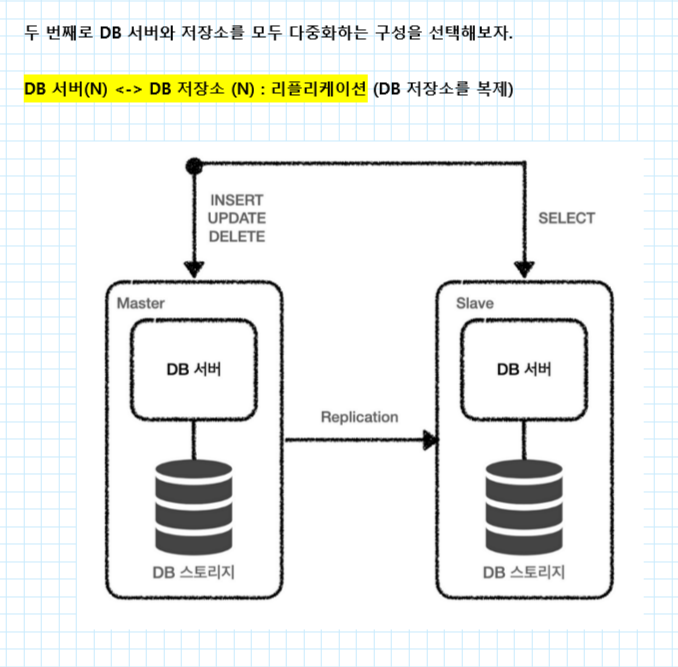 - 여러 개의 DB를 수직적 구조(Master-Slave)로 구축하는 방식