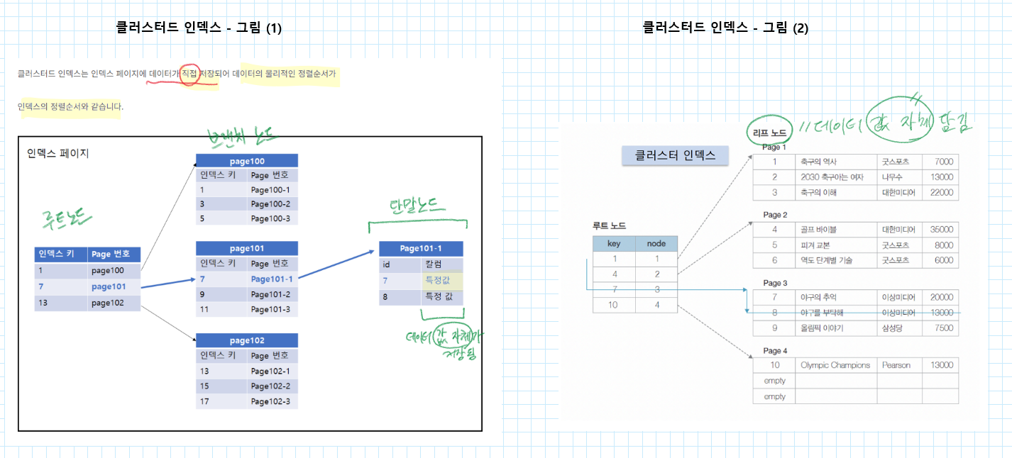 -- 클러스터 인덱스는 인덱스 페이지 자체에 데이터가 직접 저장되므로