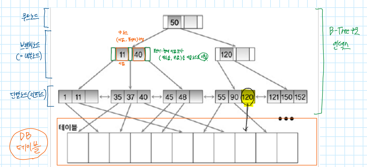 → 인덱스 페이지에는 데이터의 주소가 저장되므로 해당 주소값을 가지고 해당 주소로 접근하여 실제 데이터를 가져온다. (실제 데이터 정렬순서 변경없이 인덱스 페이지에 데이터 주소를 입력하므로)