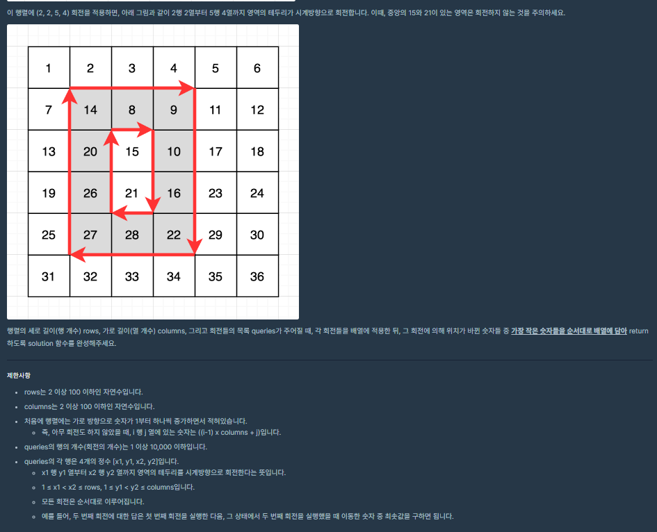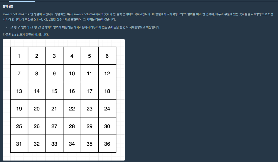 ⬛ 프로그래머스 (Dev-Matching 기출) | LV.2 행렬 테두리 회전하기 - 구현