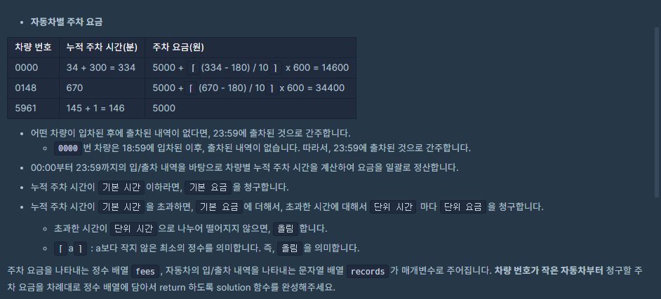 ⬛ 프로그래머스(카카오 기출) | LV.2 주차 요금 계산 - 단순 구현 문풀