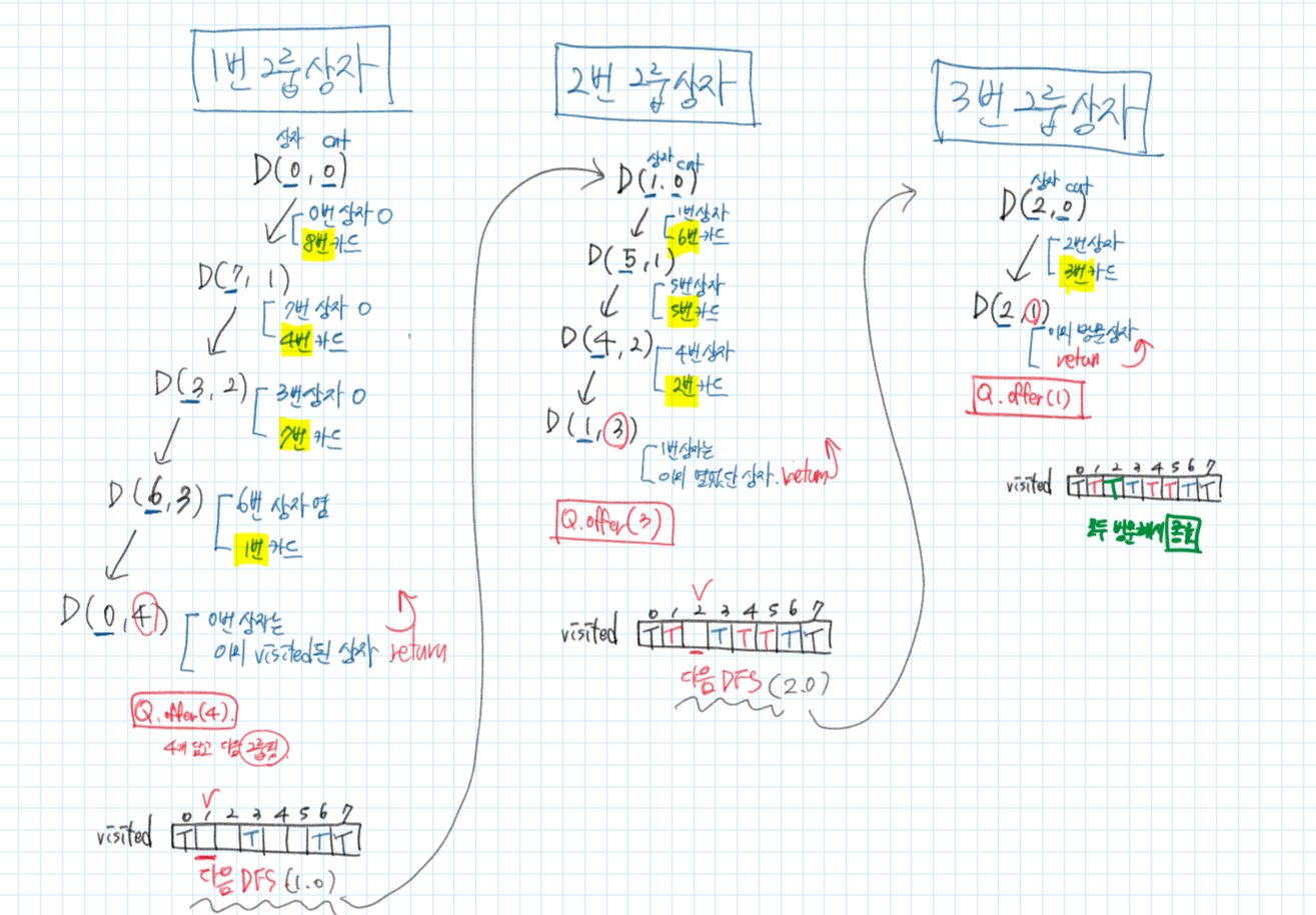 그때 DFS의 깊이를 종료하고 그때의 count된 소속 상자 개수를 pQ에 담는 방식이다.