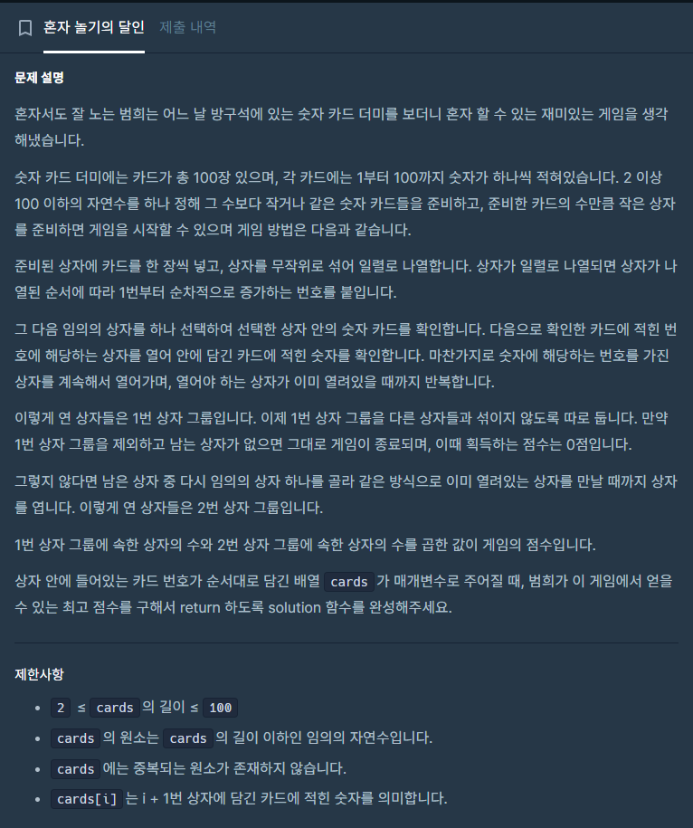 ⬛ 프로그래머스 | LV.2 혼자 놀기의 달인 - DFS 문풀 (Java)