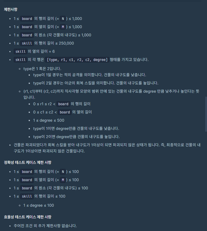 ⬛ 프로그래머스 (카카오) | LV.3 파괴되지 않은 건물 - 누적합 ( 😰 ) 문풀 (Java)