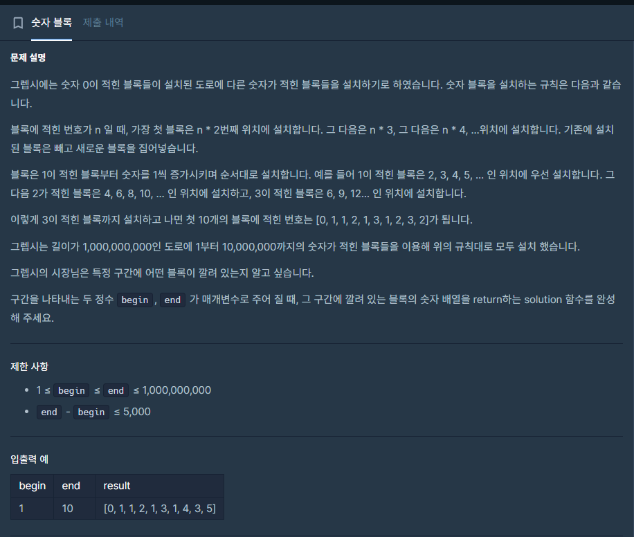 ⬛ 프로그래머스 | LV.2 숫자 블록 - 단순 구현 문풀 (Java)