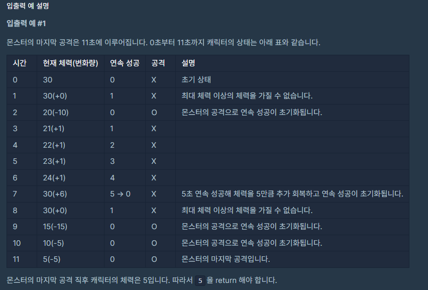 3) 로직 모두 처리 후 현재의 회복값 반환 하면 정답 처리된다.