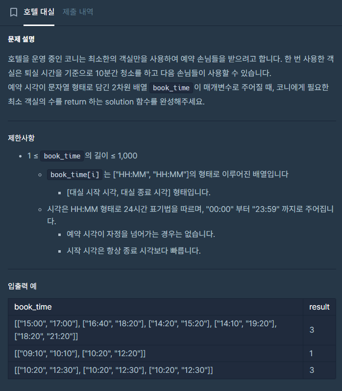 ⬛ 프로그래머스 | LV.2 호텔 대실 - 구현 문풀 (Java)