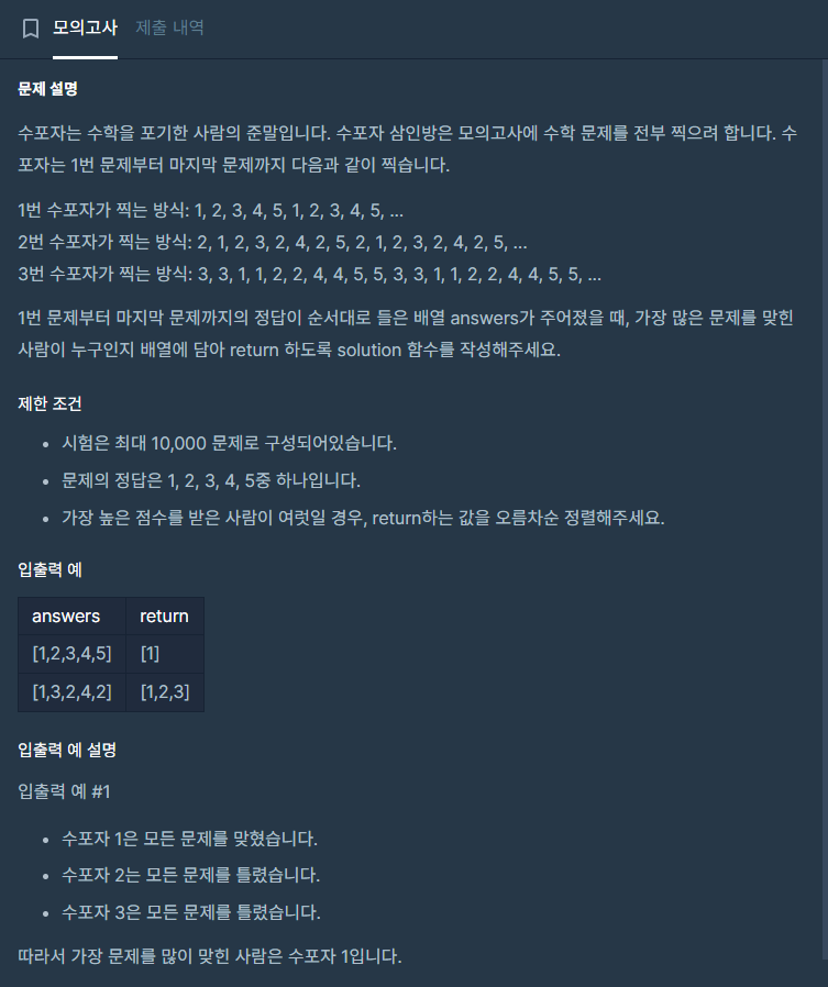 ⬛ 프로그래머스 | LV.1 모의고사 - 완전탐색 DFS 문풀 (Java)