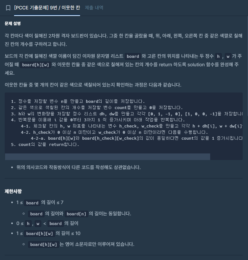 ⬛ 프로그래머스 (PCCP) | LV.1 이웃한 칸 - BFS 문풀 (Java)